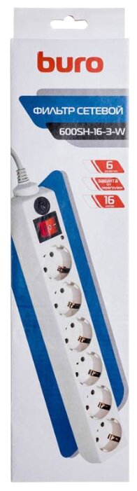 BURO 600SH-16-3-W 3м 6 розеток белый