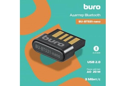 BURO Адаптер USB BU-BT531-nano BT5.3+EDR class 1.5 20м черный