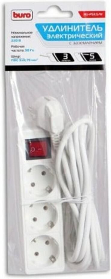 BURO BU-PS3.5/W 5м (3 розетки) белый (пакет ПЭ)