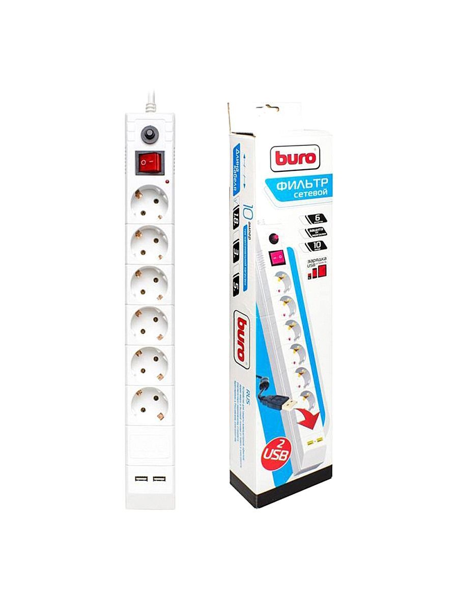 BURO BU-SP1.8-USB-2A-B 1.8м 6 розеток белый