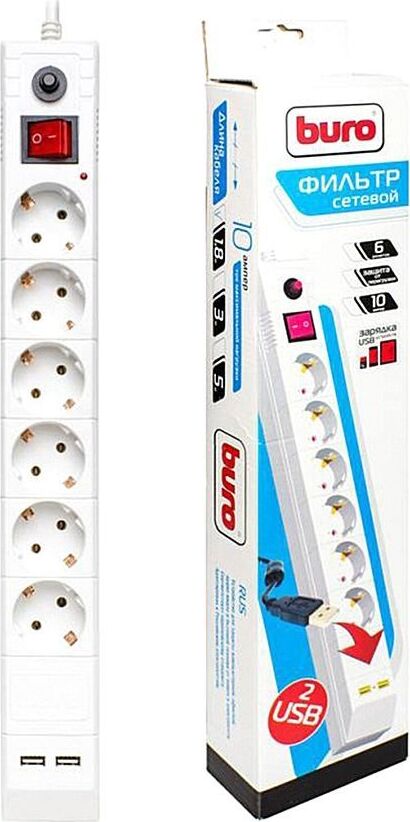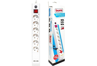 BURO BU-SP1.8-USB-2A-B 1.8м 6 розеток белый