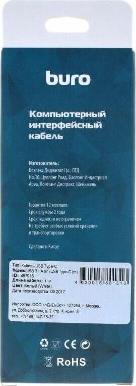 BURO Кабель BHP USB-TPC-1 USB (m)-USB Type-C (m) 1м черный