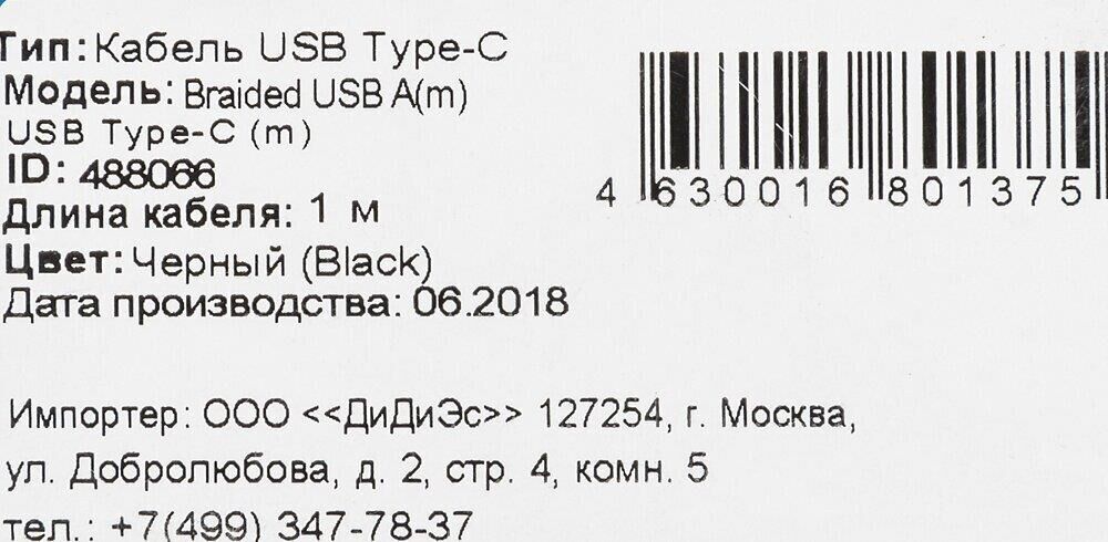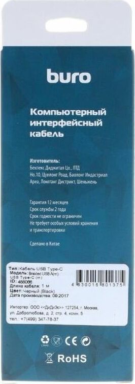BURO Кабель Braided BHP RET TYPEC1 USB (m)-USB Type-C (m) 1м