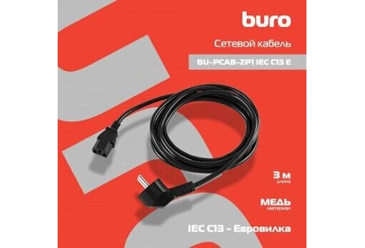 BURO Кабель питания BU-PCAB-ZP1, IEC C13 - Евровилка, 3м