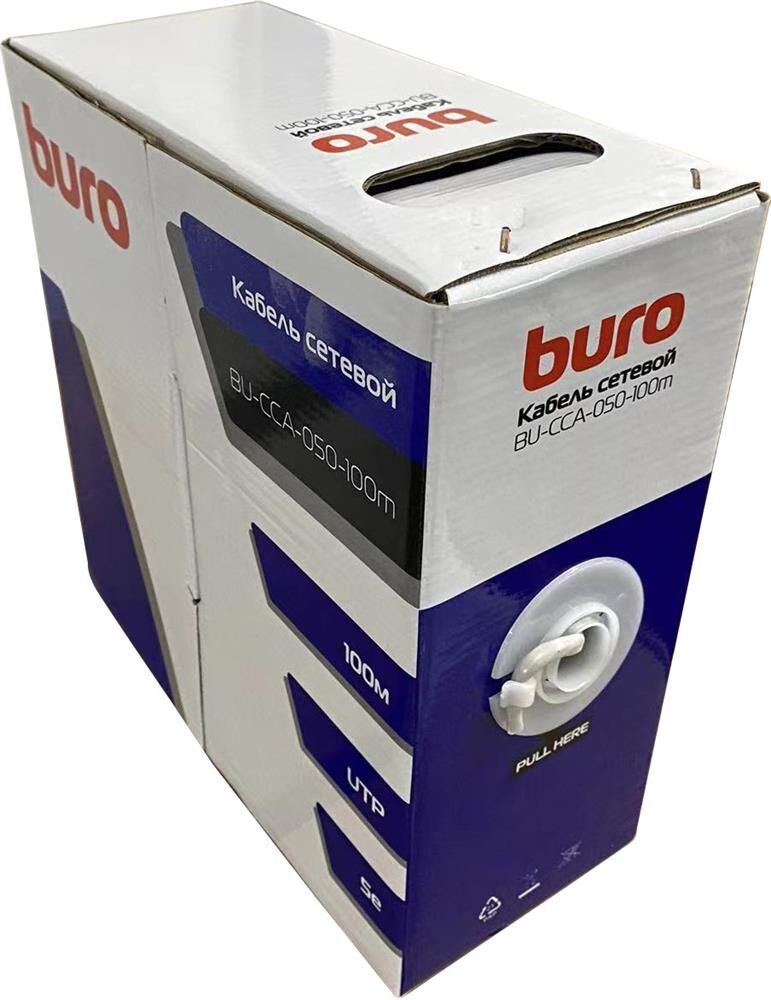 BURO Кабель сетевой BU-CCA-050-100m UTP 4 пары cat.5E solid 0.50мм CCA 100м серый