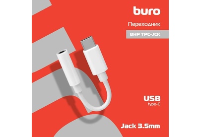 BURO Переходник BHP TPC-JCK Jack 3.5 (f)-USB Type-C (m) белый