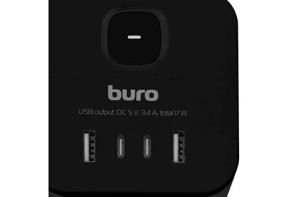 BURO Сетевой разветвитель BU-PW3UC-B (3 розетки) черный (коробка)