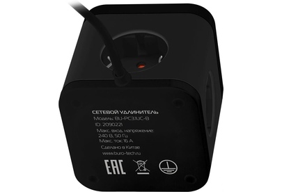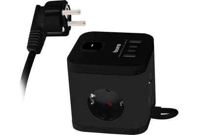 BURO Сетевой удлинитель BU-PC3.1UС-B 1.5м (3 розетки) черный (коробка)
