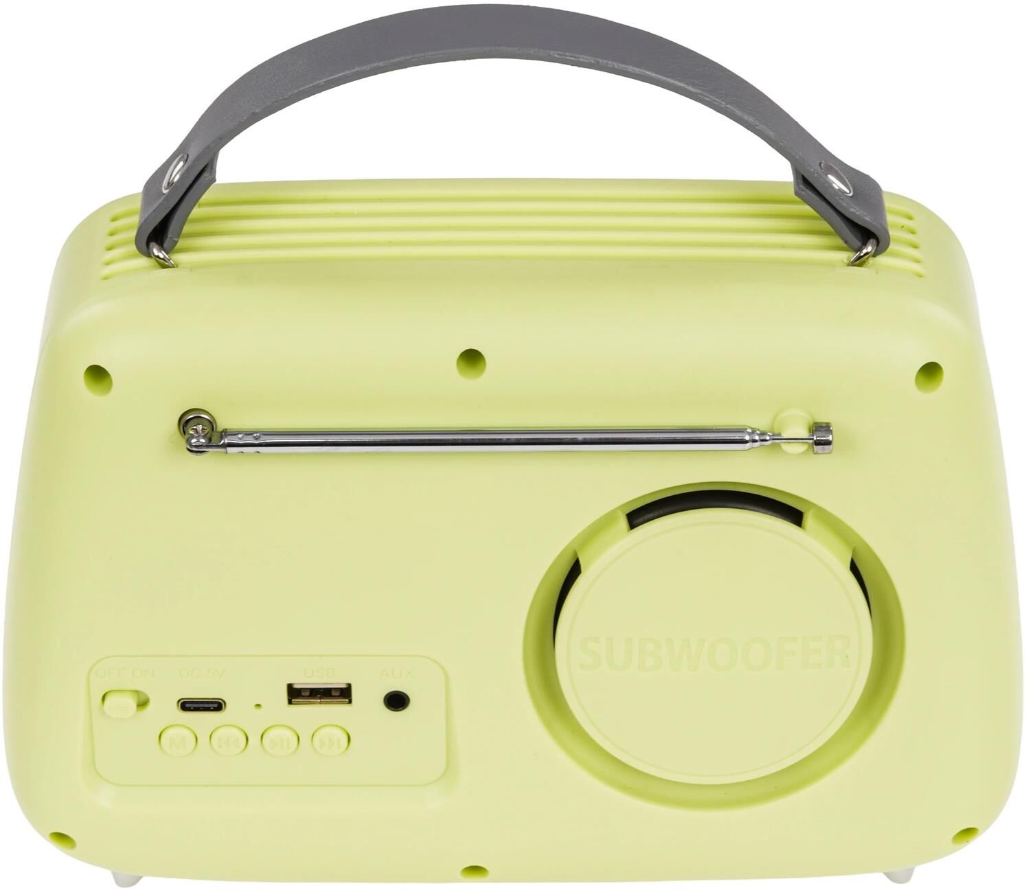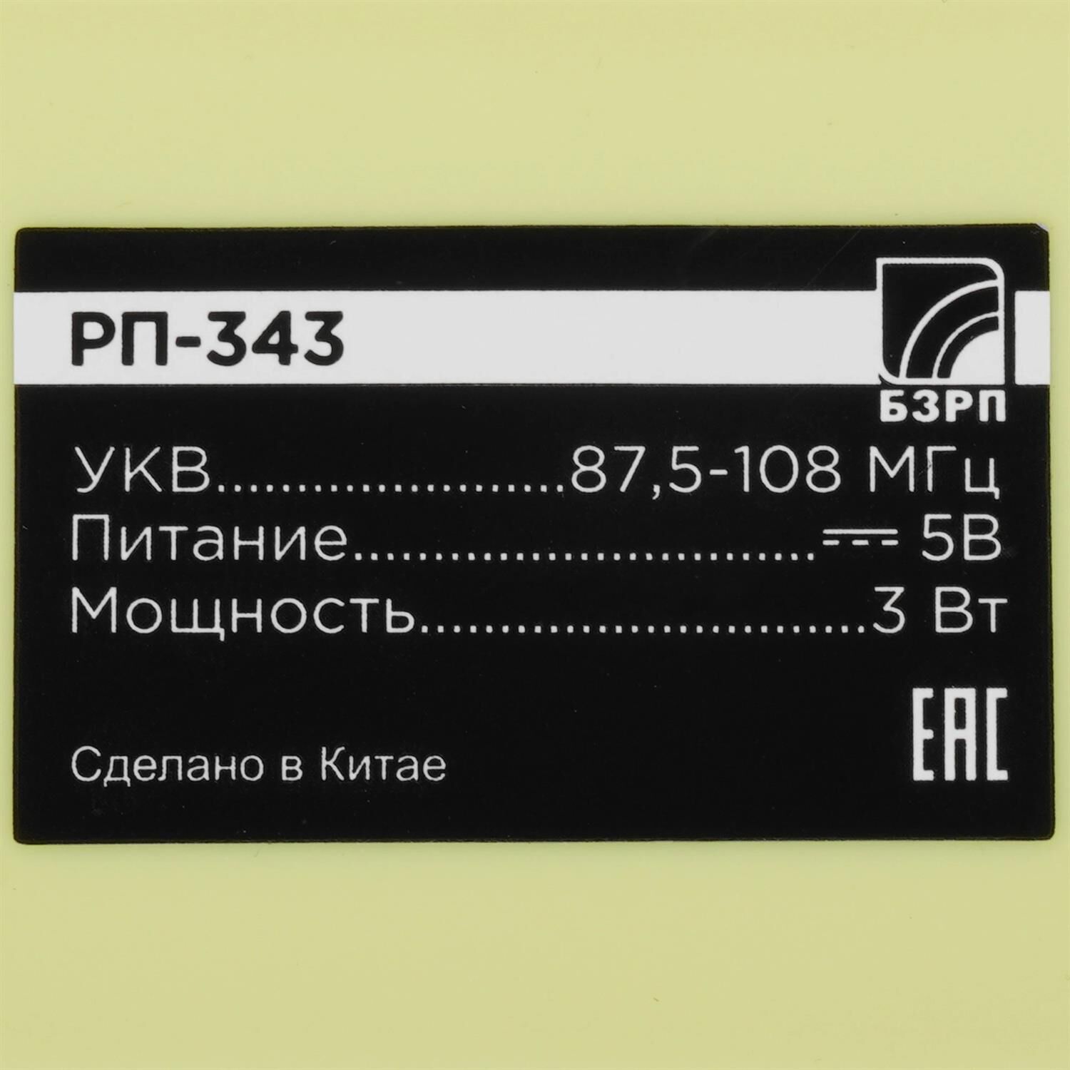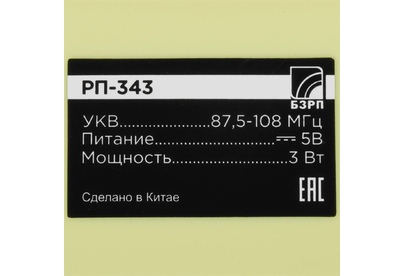 БЗРП Fresh РП-343 – радиоприемник в зеленом цвете. На фасаде имеется запоминающаяся надпись: «Яркая музыка». Свой ретро внешний вид радио сочетает с современными функциями внутри. Благодаря Bluetooth соединению можно подключаться и использовать приемник как колонку. USB порт позволяет воспроизводить любимые композиции в любом месте, на любой удаленности от связи. AUX вход дает возможность соединения с различными источниками звука.