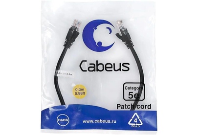 CABEUS Патч-корд PC-UTP-RJ45-Cat.5e-0.3m-BK-LSZH U/UTP RJ-45 вил.-вилка RJ-45 кат.5E 0.3м черный LSZ