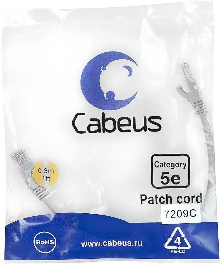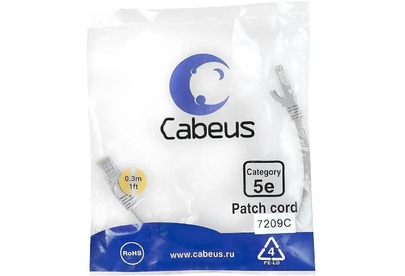 CABEUS Патч-корд PC-UTP-RJ45-CAT.5E-0.3M U/UTP RJ-45 вил.-вилка RJ-45 кат.5E 0.3м серый ПВХ