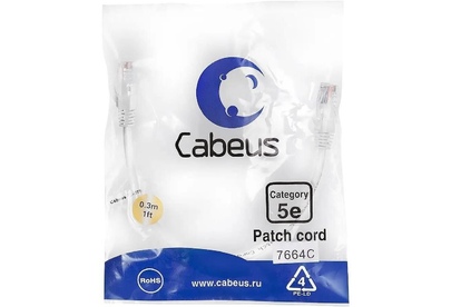 CABEUS Патч-корд PC-UTP-RJ45-Cat.5e-0.3m-WH U/UTP RJ-45 вил.-вилка RJ-45 кат.5E 0.3м белый ПВХ