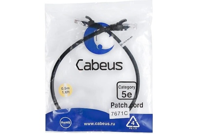 CABEUS Патч-корд PC-UTP-RJ45-CAT.5E-0.5M-BK U/UTP RJ-45 вил.-вилка RJ-45 кат.5E 0.5м черный ПВХ