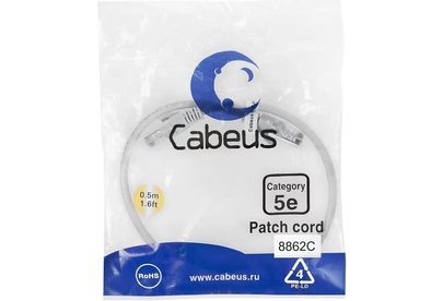CABEUS Патч-корд PC-UTP-RJ45-CAT.5E-0.5M-LSZH U/UTP RJ-45 вил.-вилка RJ-45 кат.5E 0.5м серый LSZH