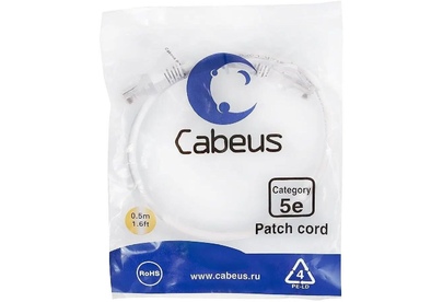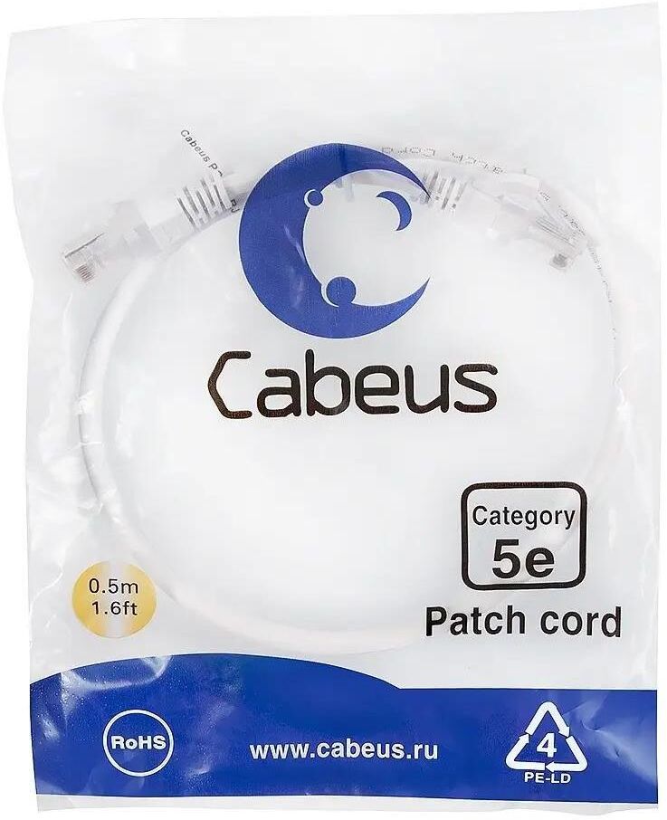 CABEUS Патч-корд PC-UTP-RJ45-CAT.5E-0.5M-WH U/UTP RJ-45 вил.-вилка RJ-45 кат.5E 0.5м белый ПВХ