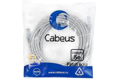 CABEUS Патч-корд PC-UTP-RJ45-CAT.5E-10M U/UTP RJ-45 вил.-вилка RJ-45 кат.5E 10м серый ПВХ