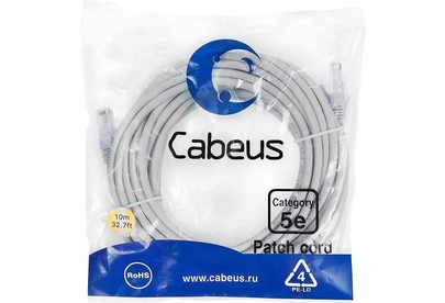 CABEUS Патч-корд PC-UTP-RJ45-CAT.5E-15M-LSZH U/UTP RJ-45 вил.-вилка RJ-45 кат.5E 15м серый LSZH