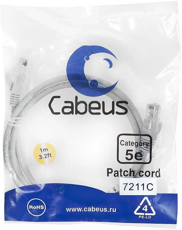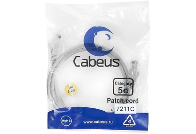 CABEUS Патч-корд PC-UTP-RJ45-CAT.5E-1M U/UTP RJ-45 вил.-вилка RJ-45 кат.5E 1м серый ПВХ