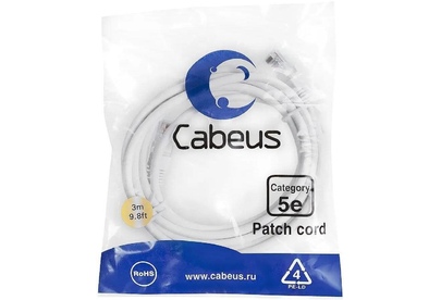 CABEUS Патч-корд PC-UTP-RJ45-CAT.5E-3M-WH U/UTP RJ-45 вил.-вилка RJ-45 кат.5E 3м белый ПВХ