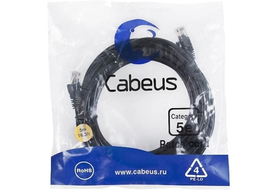 CABEUS Патч-корд PC-UTP-RJ45-CAT.5E-5M-BK-LSZH U/UTP RJ-45 вил.-вилка RJ-45 кат.5E 5м черный LSZH