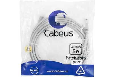 CABEUS Патч-корд PC-UTP-RJ45-CAT.5E-5M-LSZH U/UTP RJ-45 вил.-вилка RJ-45 кат.5E 5м серый LSZH