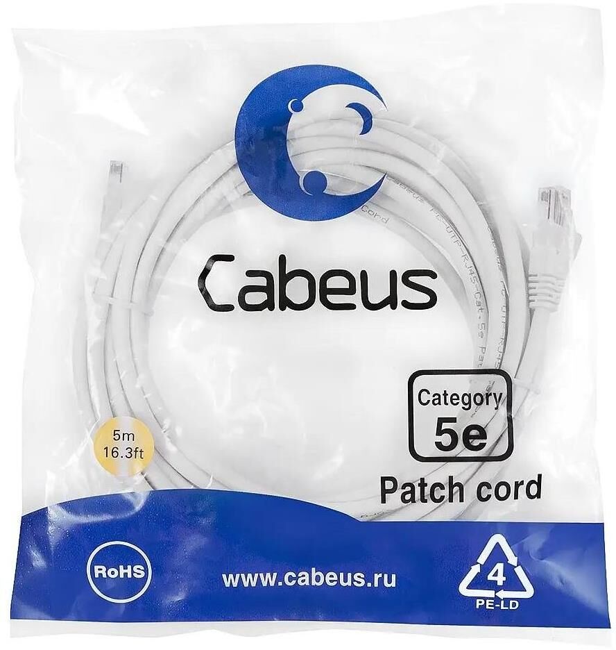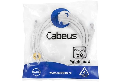 CABEUS Патч-корд PC-UTP-RJ45-Cat.5e-5m-WH U/UTP RJ-45 вил.-вилка RJ-45 кат.5E 5м белый ПВХ