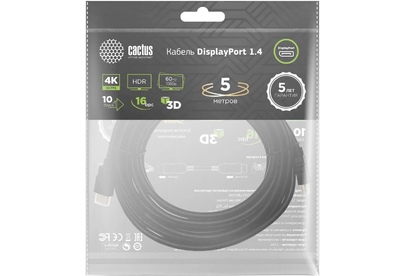 CACTUS Кабель аудио-видео CS-DP-DP-1.4-5 DisplayPort (m)/DisplayPort (m) 5м. позолоч.конт. черный