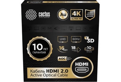 CACTUS Кабель аудио-видео CS-HDMI-AOC-2-10 HDMI (m)/HDMI (m) 10м. позолоч.конт. черный