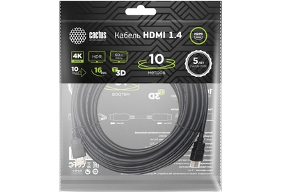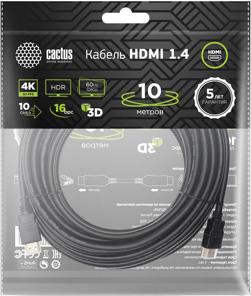 CACTUS Кабель аудио-видео CS-HDMI.1.4-10 HDMI (m)/HDMI (m) 10м. позолоч.конт. черный