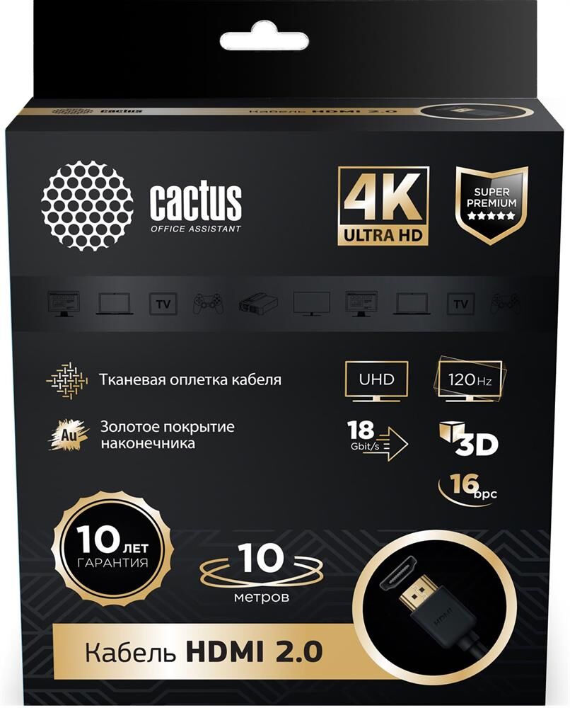 CACTUS Кабель аудио-видео CS-HDMI.2-10 HDMI (m)/HDMI (m) 10м. позолоч.конт. черный