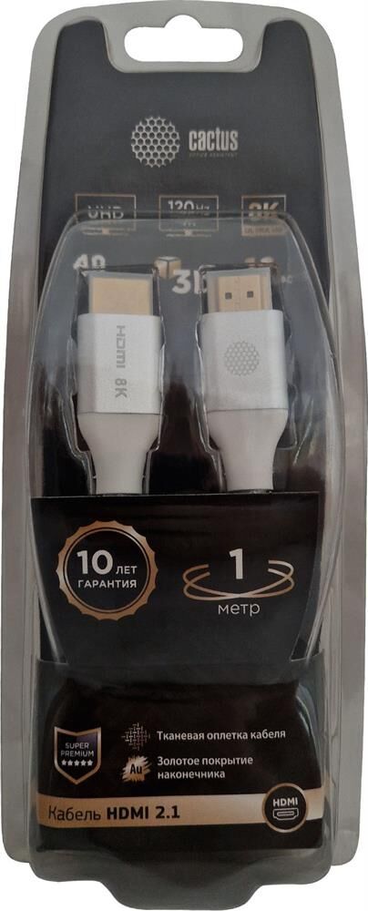 CACTUS Кабель аудио-видео CS-HDMI.2.1-1 HDMI (m)/HDMI (m) 1м. позолоч.конт. серебристый