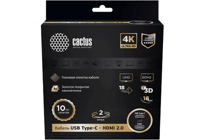 CACTUS Кабель аудио-видео CS-USBC-HDMI-2-2 USB Type-C (m)/HDMI (m) 2м. позолоч.конт. черный