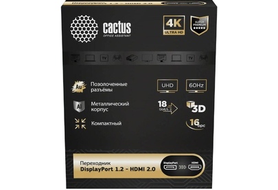 CACTUS Переходник аудио-видео CS-DP-HDMI-ADR DisplayPort (m)/HDMI (f) позолоч.конт. черный