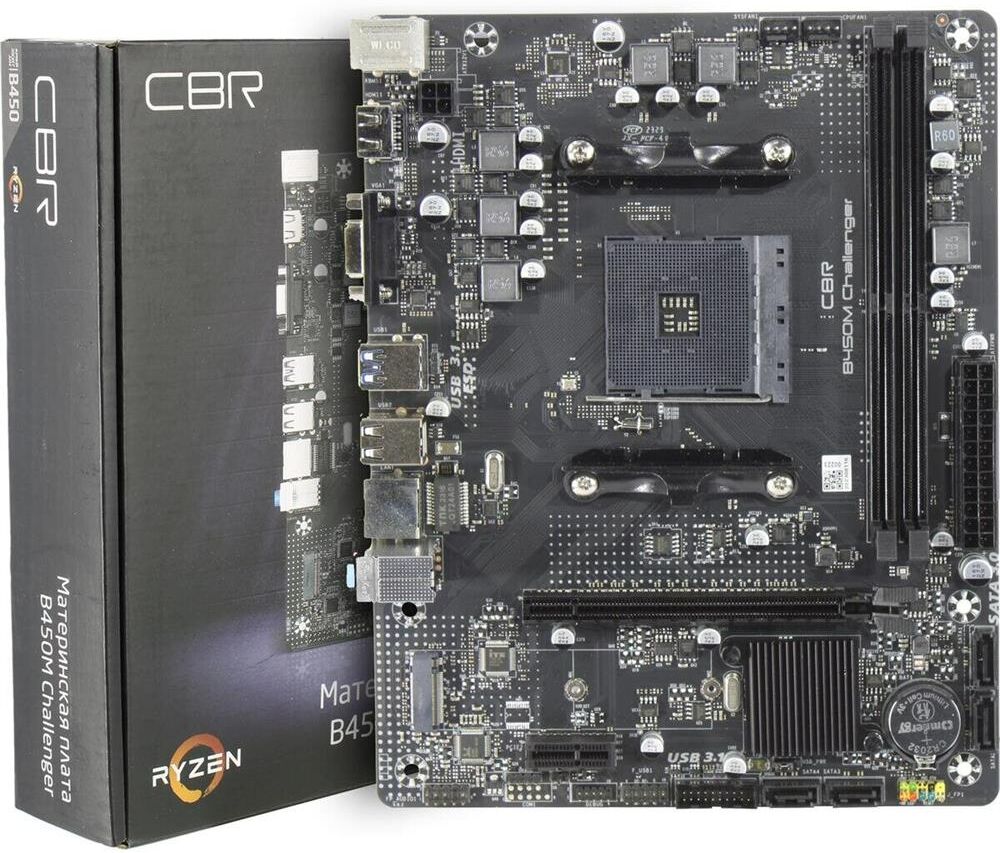 [Материнская плата] CBR B450M Challenger Socket AM4, 2*DDR4, mATX, VGA+HDMI, 1*PCIEx16/1*PCIEx1/1*M.2(NVME & SATA), 4*SATA3, 4*USB2+4*USB3, Glan