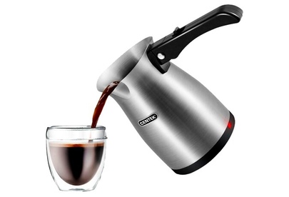 Максимальный объем 0.5 л, Мощность 1000 Вт, Складная ручка, Стальной корпус, Скрытый нагревательный элемент, Складная ненагревающаяся ручка, Защита от включения без воды , Защита от перегрева.