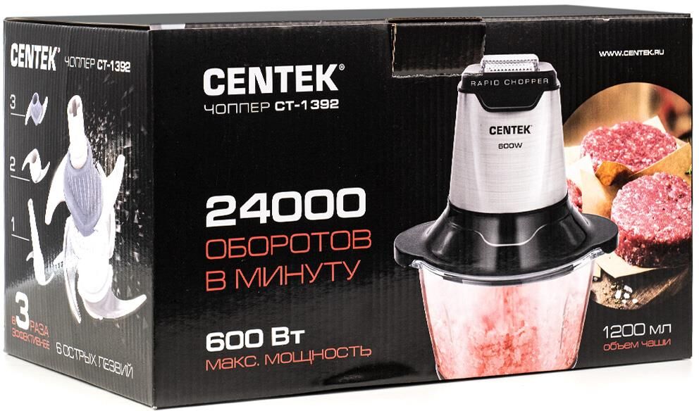 CENTEK CT-1392 Мощность 600 Вт Объем стакана 600 мл 3 острых разборных ножа Удобная очистка Компактный и удобный в хранении Лезвия из высококачественной стали Подставка для стакана