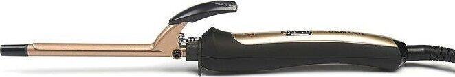 Профессиональная техника; нет; Цвет корпуса; черный, золотистый; Вид щипцов; обычные; Мощность (Вт); 25 Вт; Время нагрева (сек.); 120 секунд; Регулировка температуры; нет; Количество режимов; 1; Минимальная температура нагрева; 200°С; Максимальная температура нагрева; 200°С; Конструктивные особенности; Индикация; индикация включения; Дисплей; нет; Покрытие щипцов; керамическое; Диаметр щипцов (мм); 9 мм; Длина сетевого шнура; 1.8 м; Вращение шнура вокруг своей оси; есть; Фиксатор прядей; есть; Безопасность; Автоматическое отключение; нет; Защита от перегрева; нет; Термоизолированный наконечник; есть