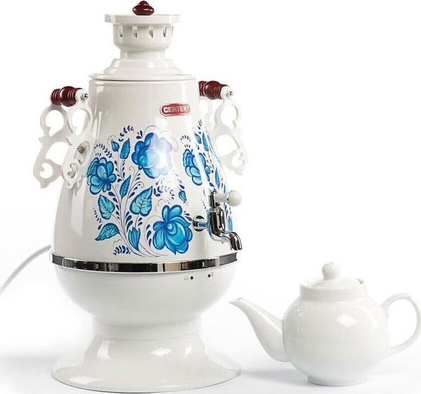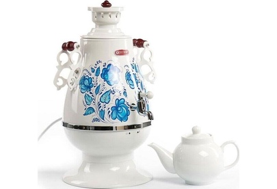 Максимальный объем 4 л. Максимальная мощность 2100 Вт. Функция поддержания температуры. Скрытый нагревательный элемент. Керамический заварочный чайник 1 л. Съемный фильтр для заварки. LED-индикаторы работы и нагрева. Хромированная отделка корпуса. Защита от включения без воды. Автоматическое выключение. Защита от перегрева.
