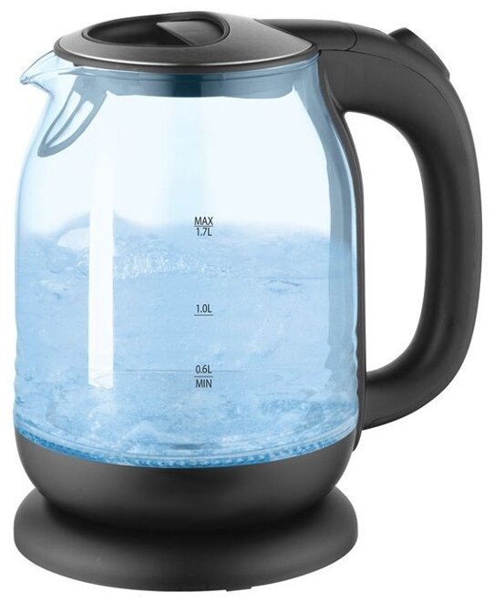 Объем 1,7 литра Корпус из термостойкого стекла Иллюминация Специальная ручка от скольжения Поворот на подставке на 360° Быстрое закипание Фильтр от накипи Закрытый нагревательный элемент Автоматическое отключение Защита от перегрева без воды Электрошнур в цокольной подставке Номинальная мощность 2000 Вт 230 B ~ 50 Гц