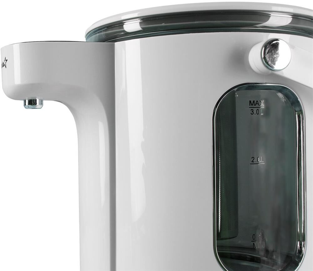 Автоматическая подача воды Большой объем 3 литра Композитный двухслойный корпус Внутренняя колба выполнена из термостойкого боросиликатного стекла Встроенный фильтр-стаканчик для заваривания Сенсорные кнопки Подсветка стаканчика Цифровой контроль температуры 4 быстрых температурных режима Ручная настройка температуры Большой, яркий LED дисплей Удобное управление, эргономичный дизайн Функция поддержания температуры Высокий уровень термоизоляции Поворот на подставке на 360° Защита от детей Быстрое закипание