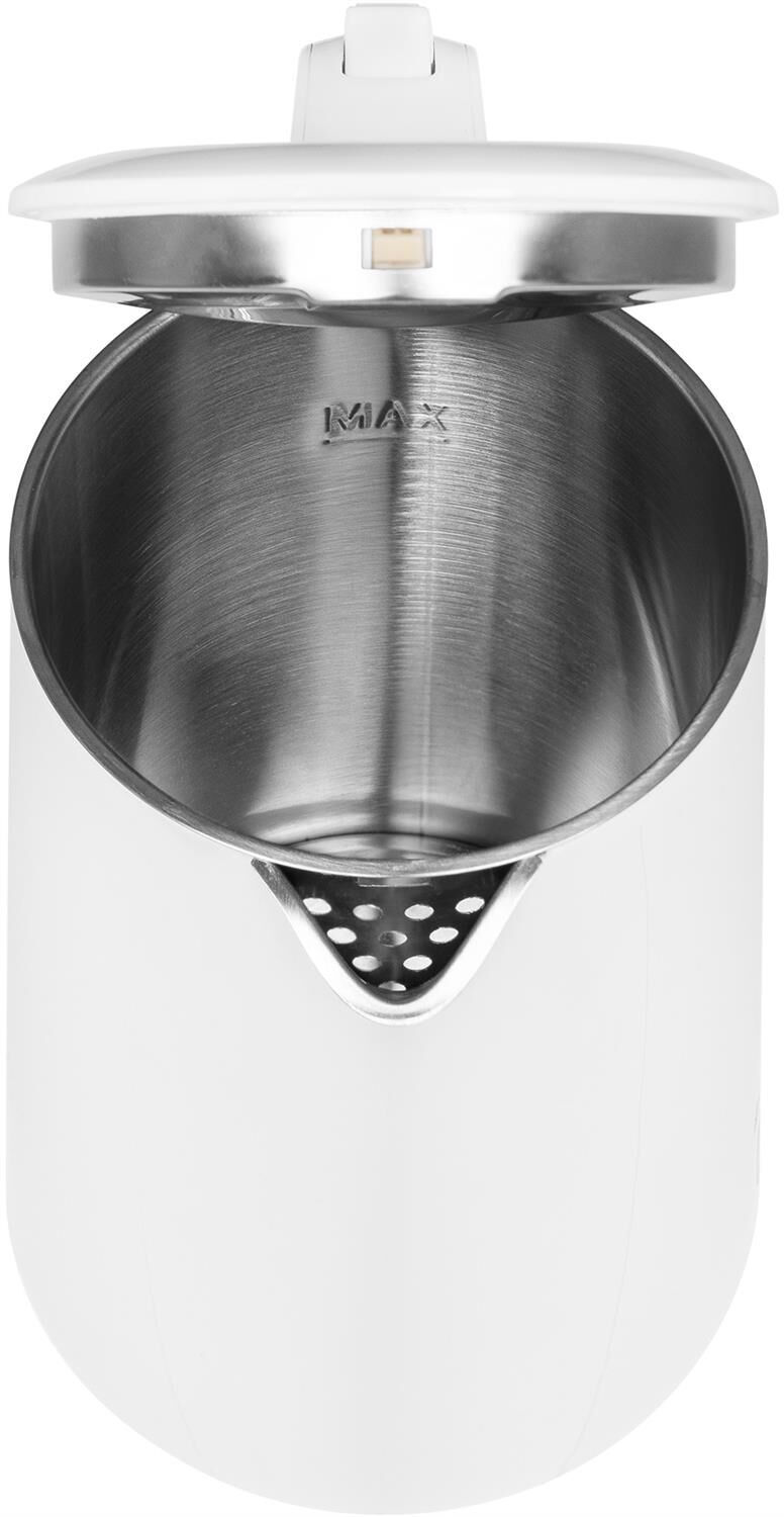 Объем чайника (Л): 1,8. Мощность (Вт): 1800-2000. Двойные стенки. Отключение при отсутствии воды. База с поворотным контактом. Шкала уровня воды: Да, внутри чайника. Цвет корпуса: белый. Материал корпуса: Нержавеющая сталь/Пластик
