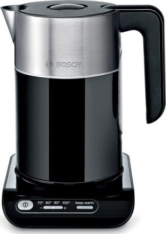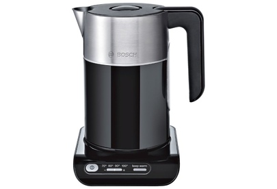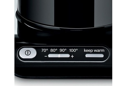 Объём 1.5 л. Мощность 2400 Вт. Терморегулятор, материал корпуса: металл/пластик. Нагревательный элемент скрытый. Установка темп. воды 70/80/90/100*С. Тип управления электронный. Цвет черный/нерж. сталь.