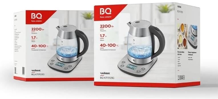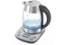 Чайник, Мощность: 2200 Вт, Oбъем: 1.7 л, 40-100 °С Регулировка температуры, Функция поддержания температуры, Дополнительные режимы для зеленого, черного, белого и травяного чая, Корпус из жаропрочного стекла, Дисковый нагревательный элемент, Фильтр против накипи, LED подстветка, Шкала уровня воды, Звуковой индикатор, Индикатор включения, Автоотключение при закипании/снятии/отсутствии воды, Отсек для хранения электрошнура в подставке, Вращающийся корпус на 360°, Напряжение 220-240 В, 50-60 Гц