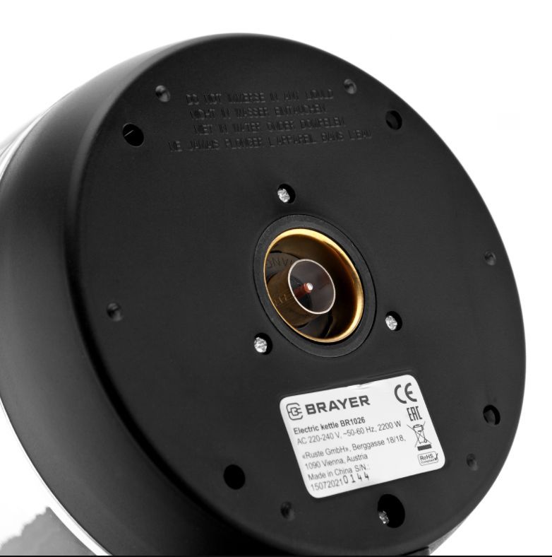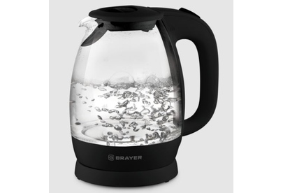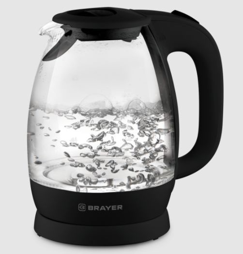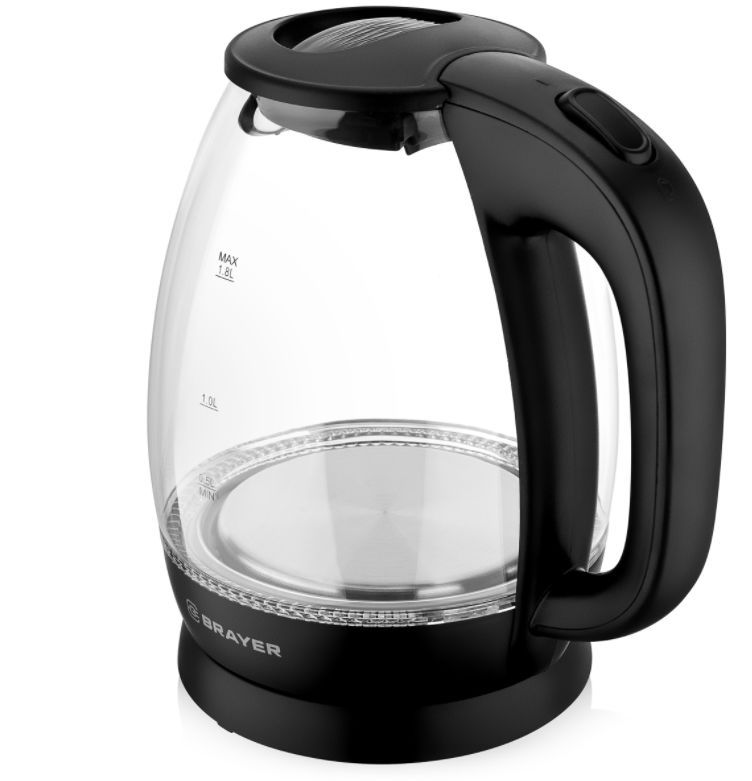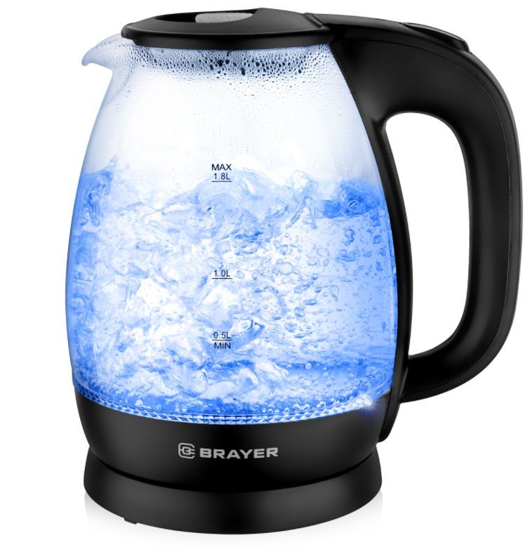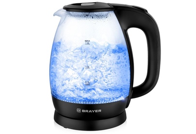 1026BR Чайник электрический BRAYER, 2200 Вт, 1,8 л, высокопроч.стекл, подсвет, автоот, моющ.фильтр Максимальная мощность 2200 Вт Максимальный объём 1,8 л Корпус из высокопрочного термостойкого стекла Внутренняя подсветка Автоотключение при закипании воды Отключение при отсутствии воды Моющийся фильтр Противоскользящее основание Электропитание 220-240 В, ~50-60 Гц
