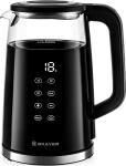 Надежный и мощный чайник: Благодаря мощности 2200 Вт, чайник вскипятит воду за считанные минуты. Объем чайника составляет 1,7 л. Управление на корпусе: Управление чайником осуществляется с помощью удобной сенсорной панели, расположенной на корпусе. Вы можете выбрать нужную Вам температуру: 40° – 100° С, для заваривания различных сортов чая. Чайник будет поддерживать заданную температуру в течение 2-х часов. Безопасность: Корпус выполнен из нержавеющей стали с пластиковым покрытием Cool Touch, которое остается холодным при нагревании. А при отсутствии воды и при закипании чайник отключится самостоятельно. Чистая вода: В носик чайника встроен фильтр для защиты от накипи. Наглядность: Контрастные отметки литража расположены внутри корпуса. Основные характеристики: Тип: чайник электрический Тип управления: сенсорное Максимальная мощность: 2200 Вт Электропитание: 220-240 В, ~ 50-60 Гц Объём: 1,7 л Функции кипячения и подогрева воды для разных сортов чая: 40-100 °С Подогрев воды: да Поддержание заданной температуры