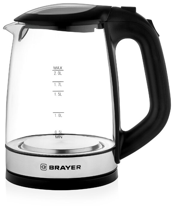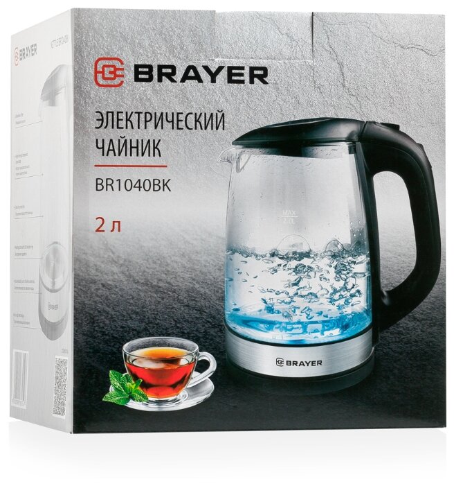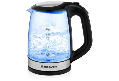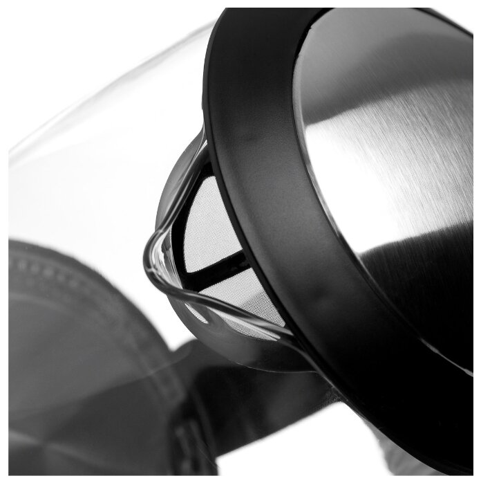 Максимальная мощность 2200 Вт Максимальный объём 2 л Корпус из высокопрочного термостойкого стекла Внутренняя подсветка Автоотключение при закипании воды Отключение при отсутствии воды Моющийся фильтр Противоскользящее основание Электропитание 220-240 В, ~50-60 Гц