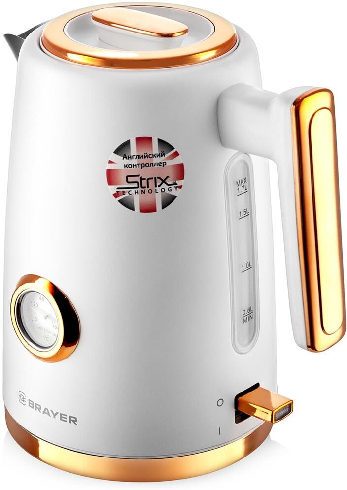 Английский контроллер VNQ™ by STRIX Максимальная мощность 2200 Вт Объём 1,7 л Корпус из нержавеющей стали Встроенный термометр Индикатор уровня воды Автоотключение при закипании воды Отключение при отсутствии воды Электропитание 220-240 В ~ 50-60 Гц