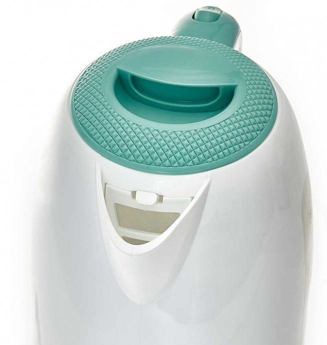 Объем 1,7 л. Номинальная потребляемая мощность 2200 Вт. Корпус из высококачественного жаропрочного пластика. Закрытый нагревательный элемент из нержавеющей стали. Вращение корпуса на 360°. Цвет: белый с мятным. Двухсторонняя шкала уровня воды. Световой индикатор работы. Съемный фильтр. Отсек для хранения шнура. Противоскользящие ножки. Автоматическое отключение при закипании. Блокировка включения без воды.