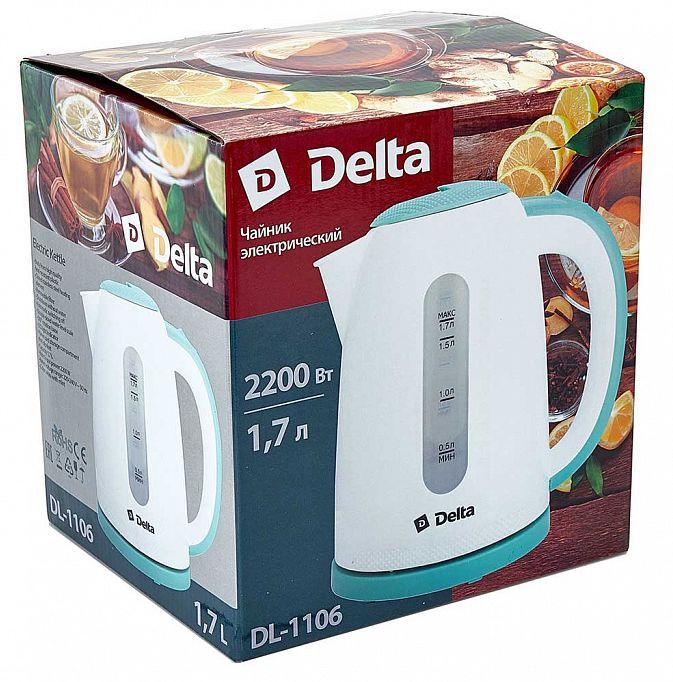 Чайник DELTA DL-1106 белый с мятным