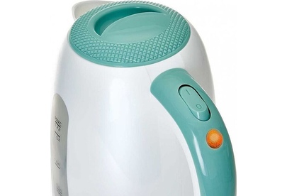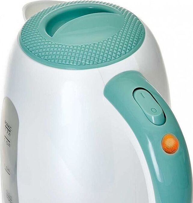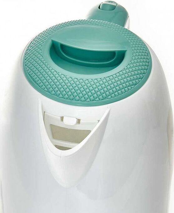 Объем 1,7 л. Номинальная потребляемая мощность 2200 Вт. Корпус из высококачественного жаропрочного пластика. Закрытый нагревательный элемент из нержавеющей стали. Вращение корпуса на 360°. Цвет: белый с мятным. Двухсторонняя шкала уровня воды. Световой индикатор работы. Съемный фильтр. Отсек для хранения шнура. Противоскользящие ножки. Автоматическое отключение при закипании. Блокировка включения без воды.